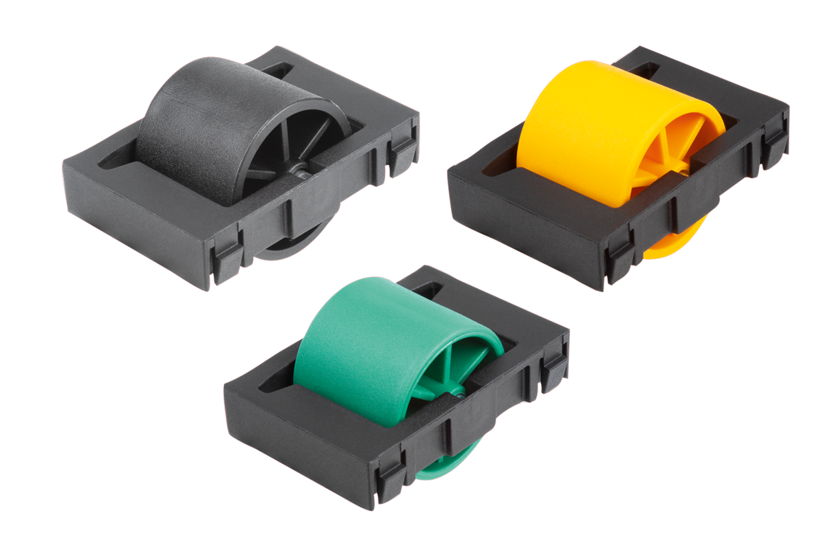 The roller elements are matched to the aluminum profiles for roller rails and can be mounted on them quickly and easily. No tools required. Suitable for aluminum profiles Type B and I.