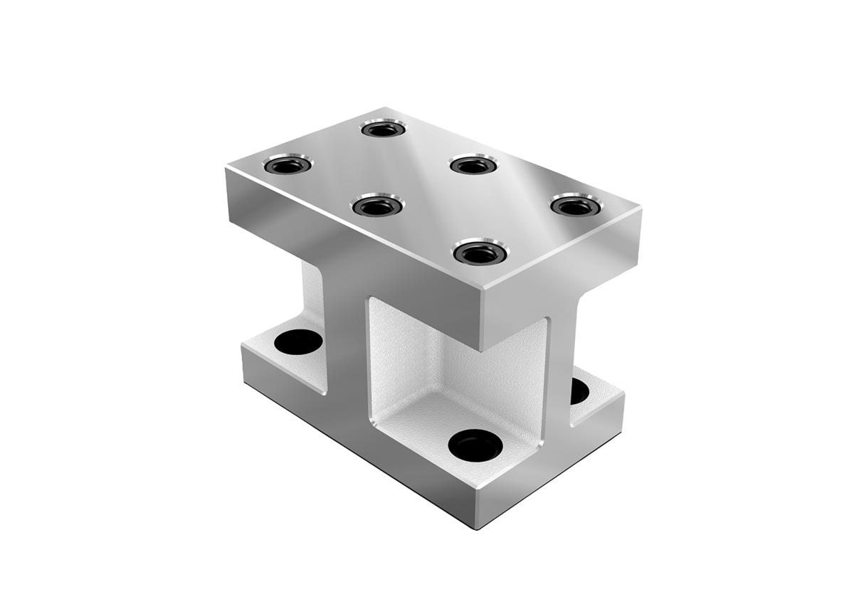 Riser blocks are used for constructing modular fixtures. Several riser blocks can be mounted on each other. Support elements, clamping devices, and stops can then be mounted on the top riser block. Riser blocks are fastened using DIN 912 cap screws.