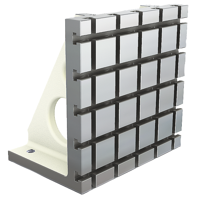 Angle plates are used for the vertical positioning and mounting of workpieces and fixtures. These angle plates with T-slots provide a quick and economic way of clamping workpieces with standardised clamping elements. The precise longitudinal and transverse slot spacing ensures high repeat clamping accuracy.