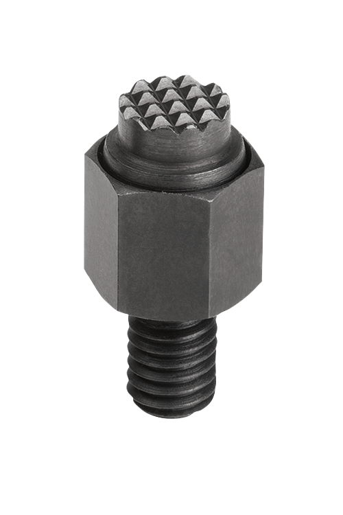 The self-aligning pads serve as stops, rests and thrust pads in fixture construction.