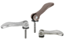 Cam levers, stainless steel, with external thread, plastic-metal thrust washer and stainless steel stud