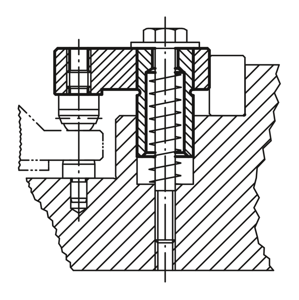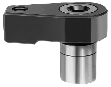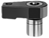A reamed hole is drilled into the fixture base. The hole depth depends on the required clamping height. A support is placed under the rear rounded hook part (radius 22) to take the counterforce, this can be flat, semicircular or prismatic. A DIN 933 hex. head screw tightens the clamp.