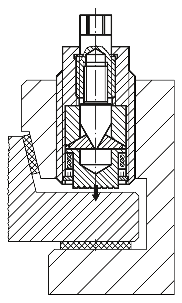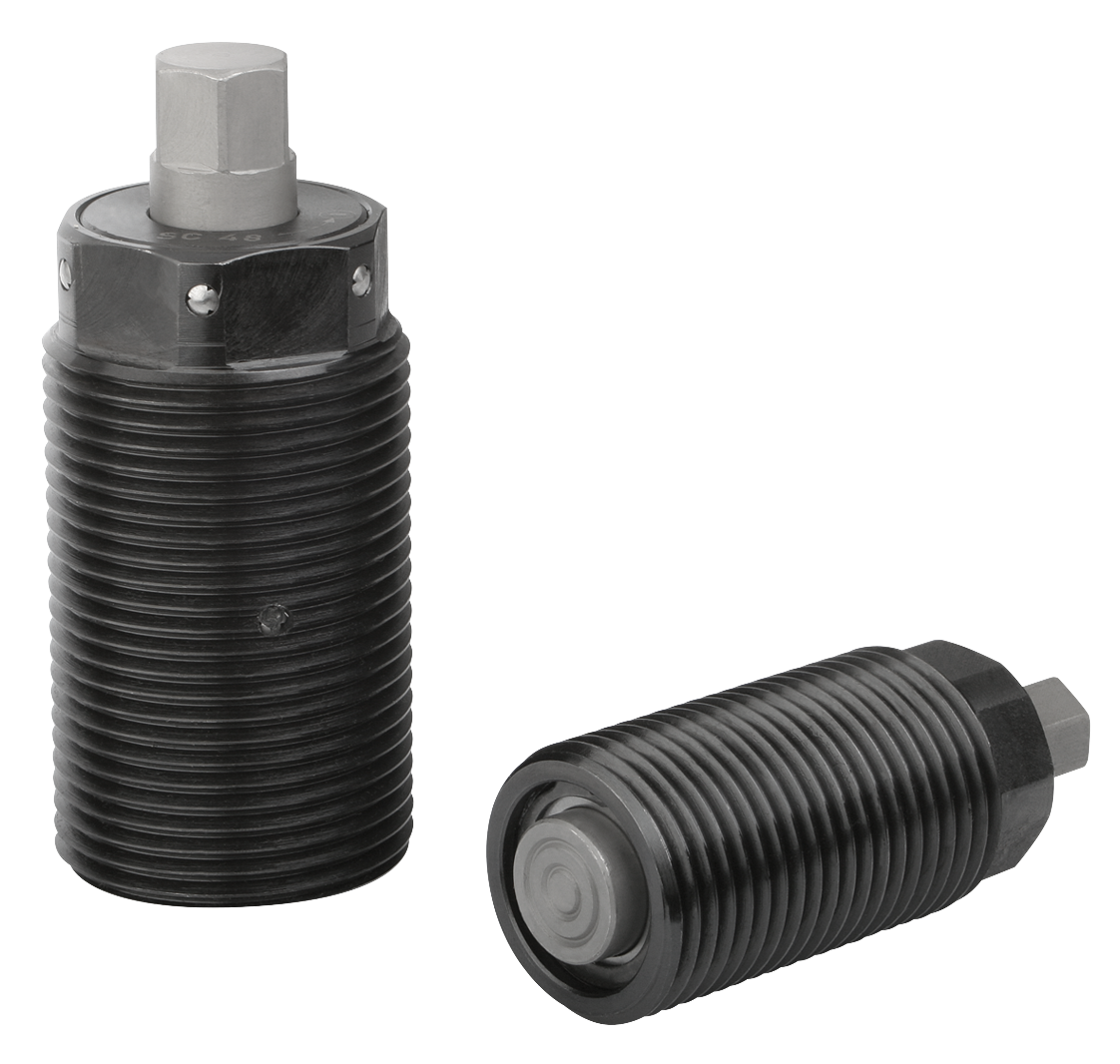 These power clamping screws are fitted with a patented wedge mechanism. This system allows the greatest clamping forces to be achieved at low torques with a simple manual operation. The wedge mechanism is self-limiting in every clamping position. A longer path can be quickly traversed via the external thread of the screw before the wedge mechanism (travel up to 2.2 mm) is used for clamping. Tightening screws are used for many purposes, primarily in presses, punches, production machines, fixtures and equipment production.