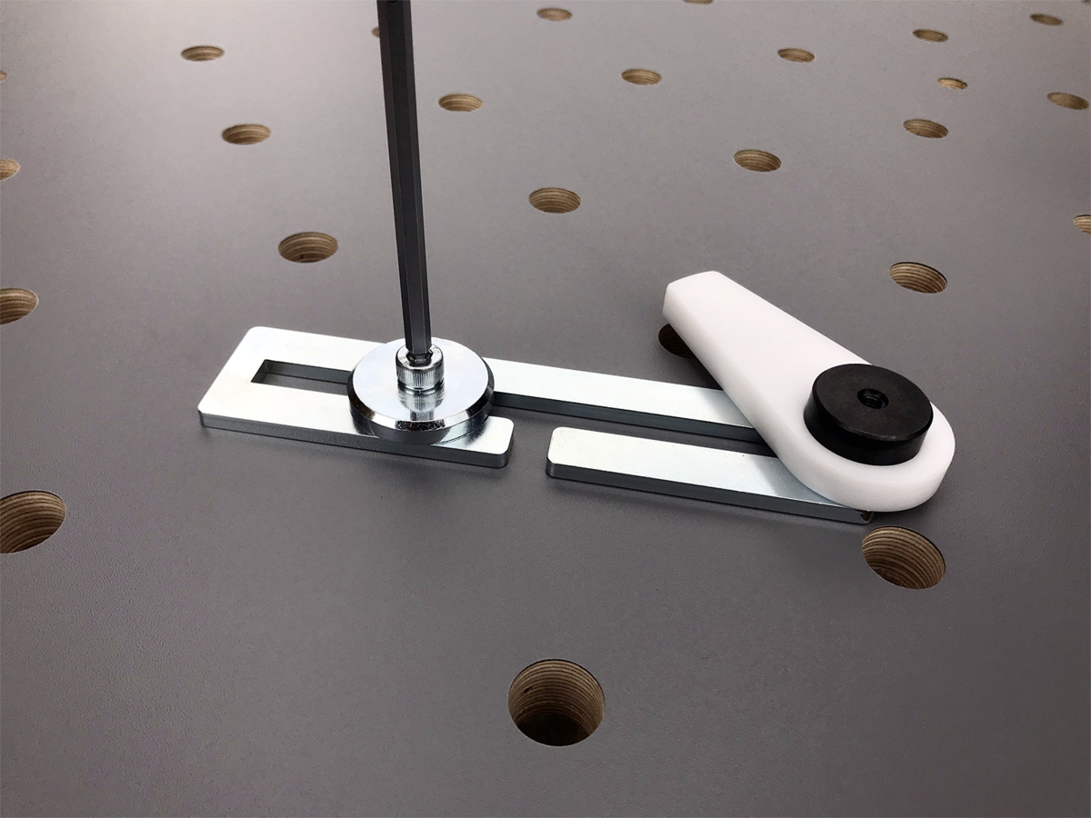 Plates can be used in combination with a pivot bearing and cam clamp for indirect clamping. The plates are fastened to grid hole tables using clamping pins and washers. They can also be clamped to machine slot tables by combining with eccentric clamp modules.