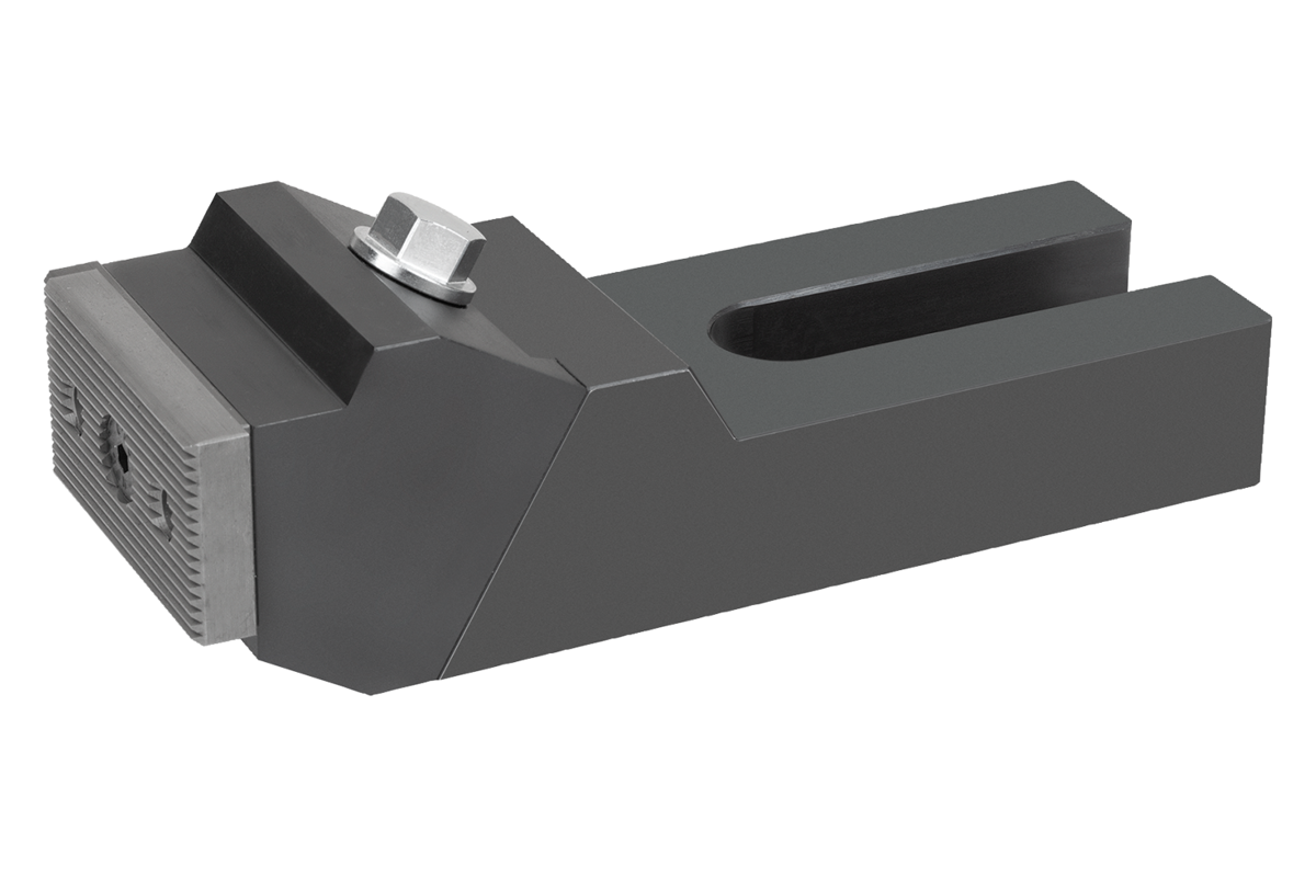 Both sides of the jaw plates can be used. Smooth side for machined faces, serrated side for rough faces. Two screws should be used to secure the robust side clamp to the machine table. Depending on the slot width, the screws for T-slots 07040 make suitable mounting screws. These must be ordered separately.