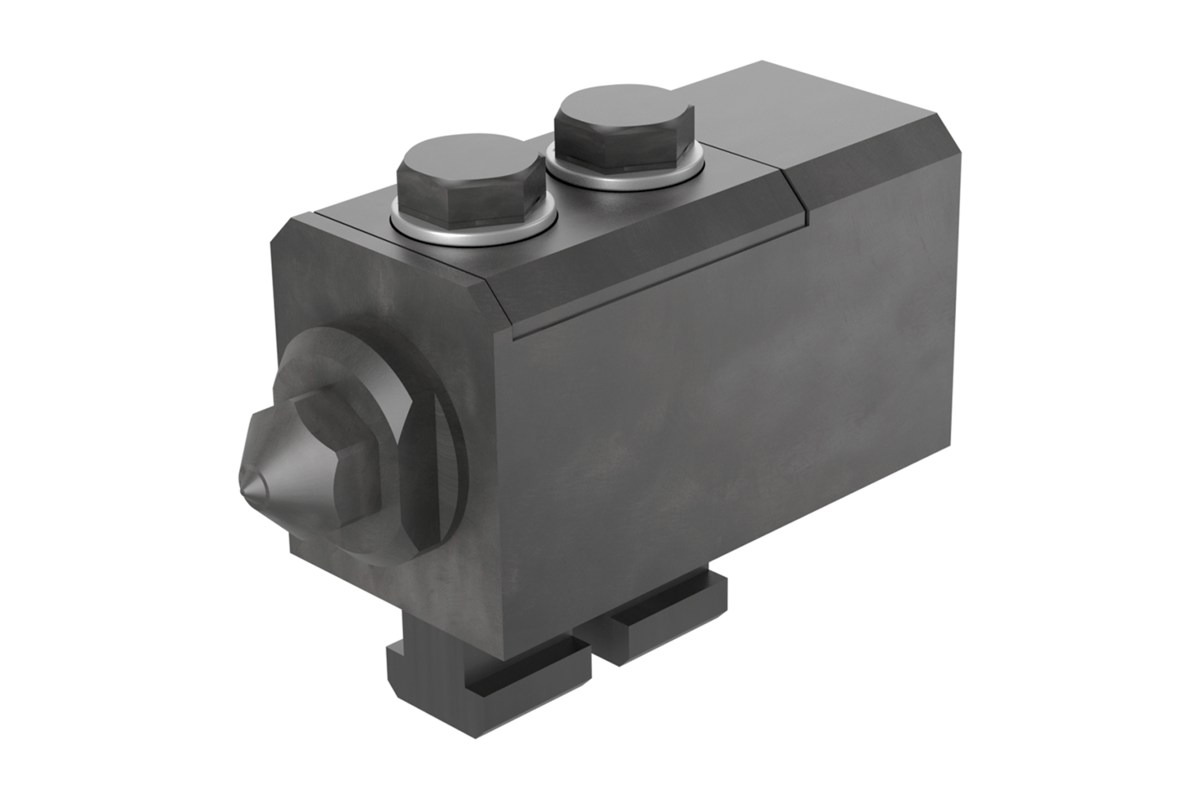 This mechanical side clamp, which has no draw-down effect, can be used as a clamping or stop element.