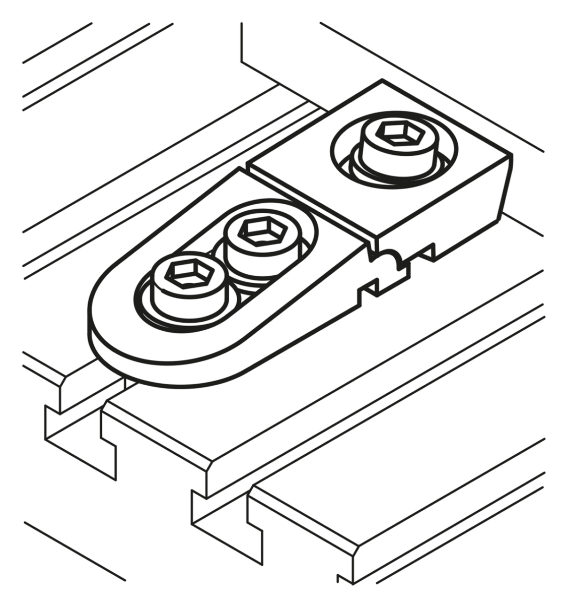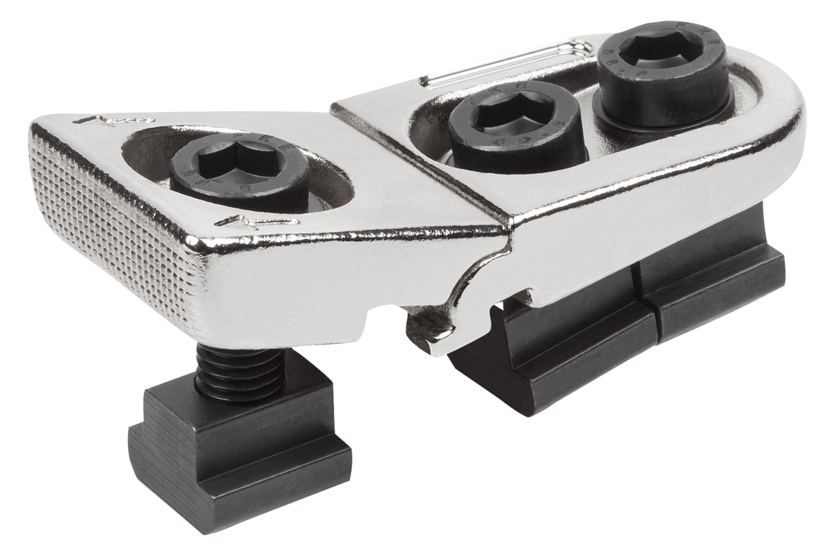 Particularly low workpieces can be clamped using the T-slot clamps. The positive down force helps to hold the workpiece down on the machine table.