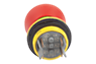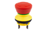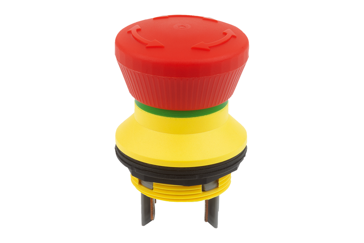 Emergency stop buttons are used to manually switch off machines and systems quickly in emergencies. The push button engages when depressed and can be unlocked again by twisting it to the right or left. The red button is located on a yellow background. This ensures good identification.