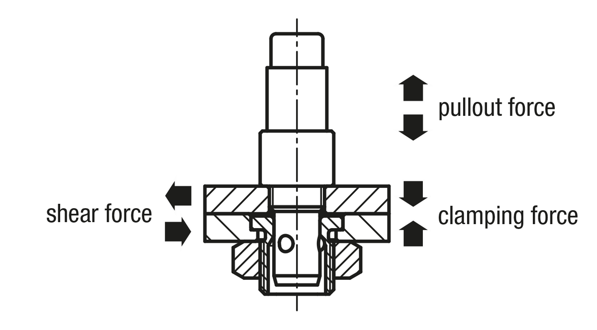 The specified pullout forces only apply in conjunction with locating bushing 03192-02.