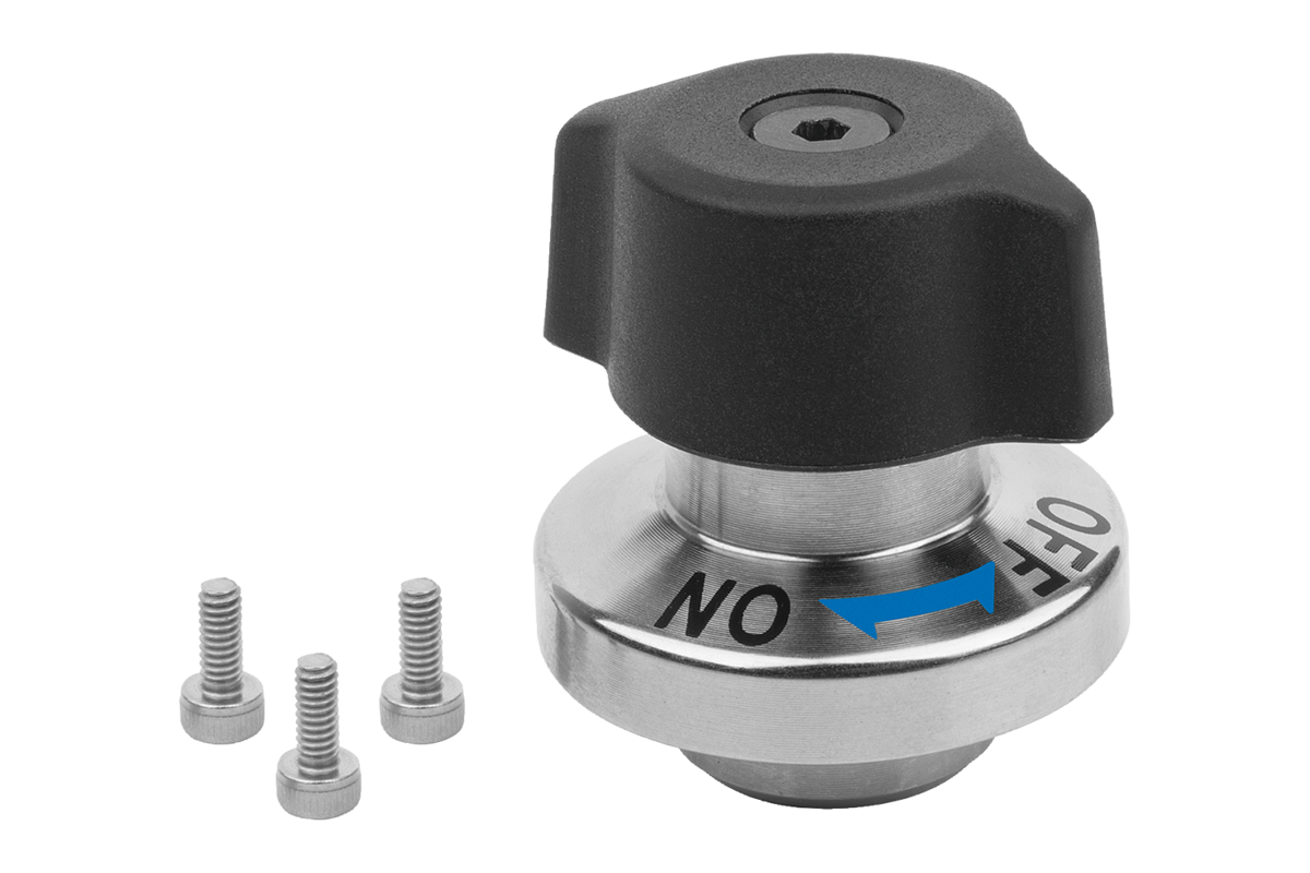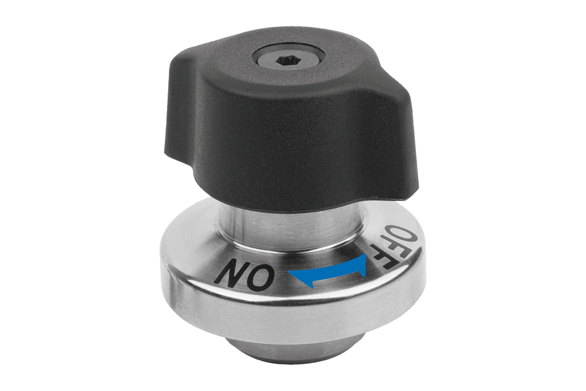 Set the lift and turn latch over the clamping pin and turn the rotary knob to the ”ON” position.