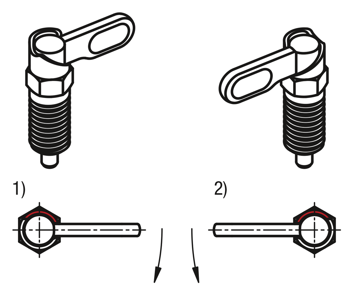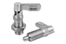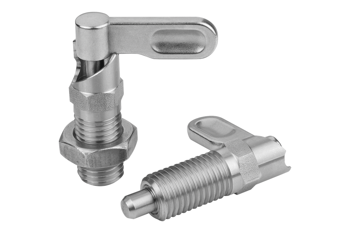 Cam-action indexing plungers are used when the indexing pin should not project all the time. Turning the handle through 180° retracts the pin.