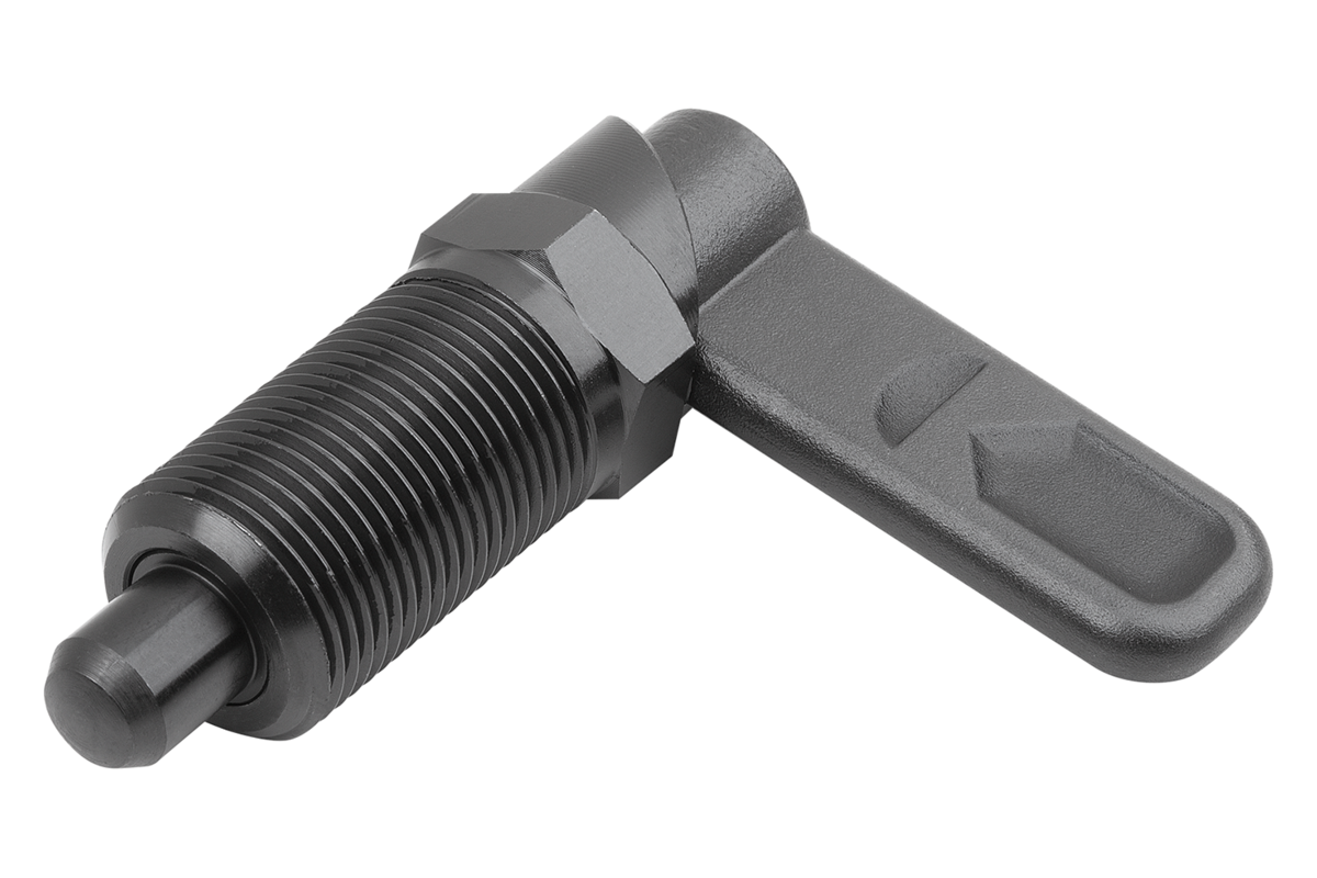 Cam-action indexing plunger are used where any change in locking position due to lateral forces should be prevented. Turning the grip through 180° retracts the indexing pin, enabling a change in the indexed position. The notch ensures that the grip remains in this position and the indexing pin remains retracted.