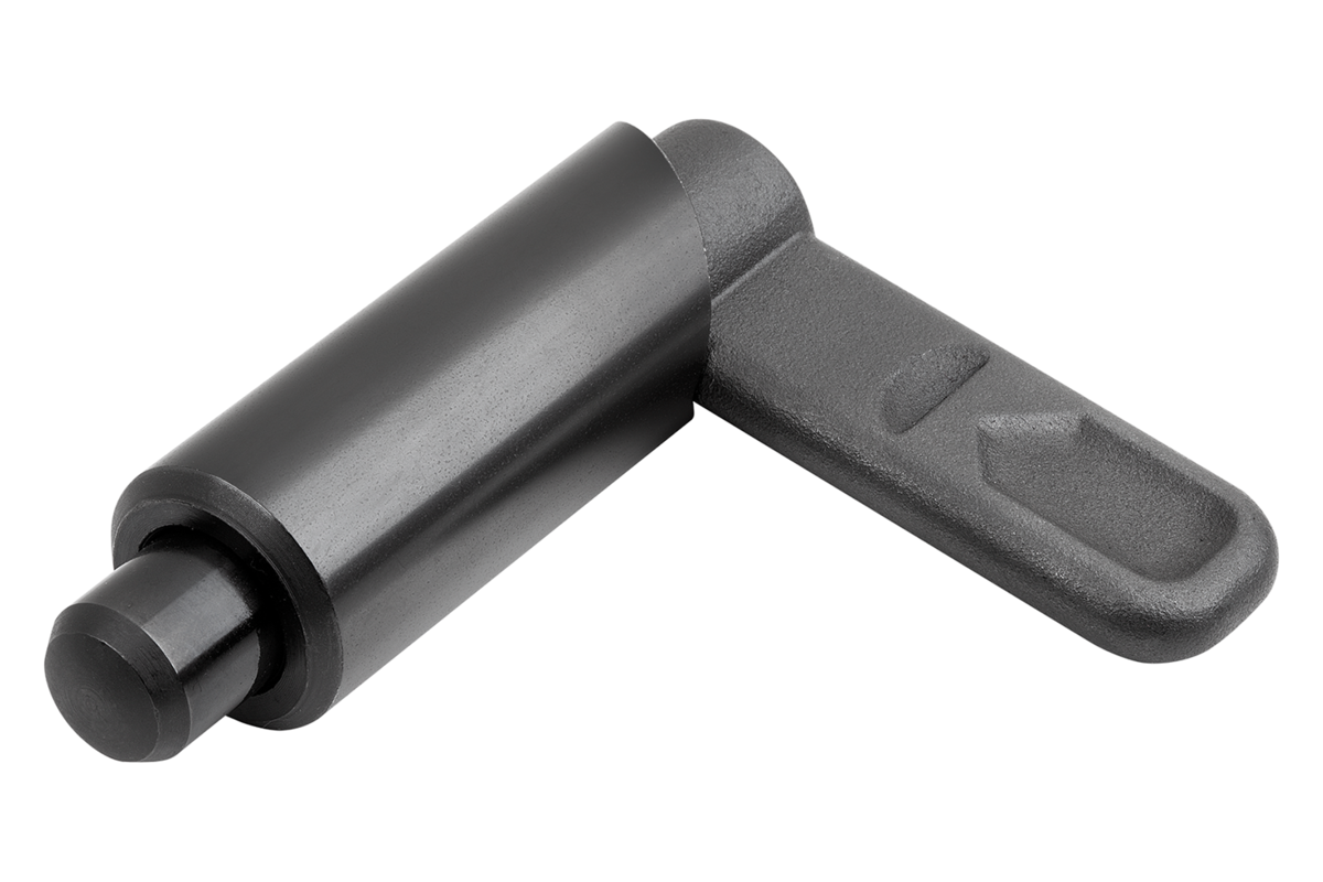 Cam-action indexing plungers are used where any change in locking position due to lateral forces should be prevented. Turning the grip through 180° retracts the indexing pin, enabling a change in the indexed position. The notch ensures that the grip remains in this position and the indexing pin remains retracted.