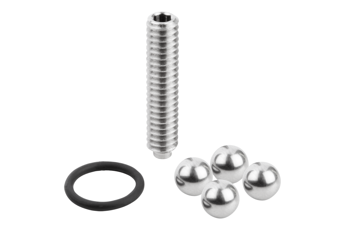 Locating cylinder and ball hardened to min. 40 HRC, bright.
