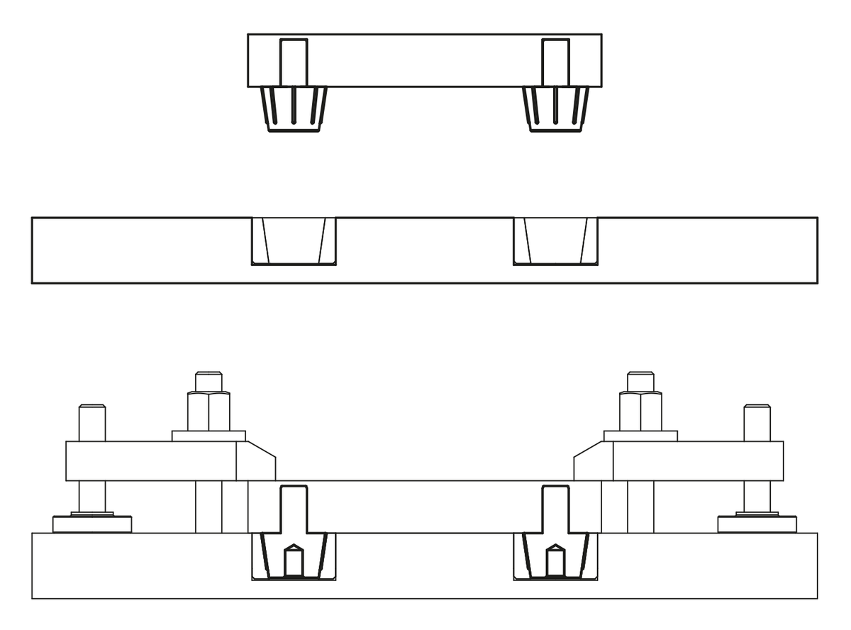In conjunction with the position bushings, the position cones form a centering unit for the high-precision positioning of two components. The system achieves a repeat accuracy of <0.003 mm. The bonded rubber does not become brittle and is insensitive to contamination or metal chips. Small embedded metal chips splinters do not effect the system.