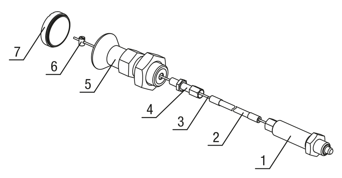 The supplied screw nipple (Ø5 x 7 mm) can be used as an alternative to the actuating element to integrate a customised actuating element into the system.