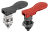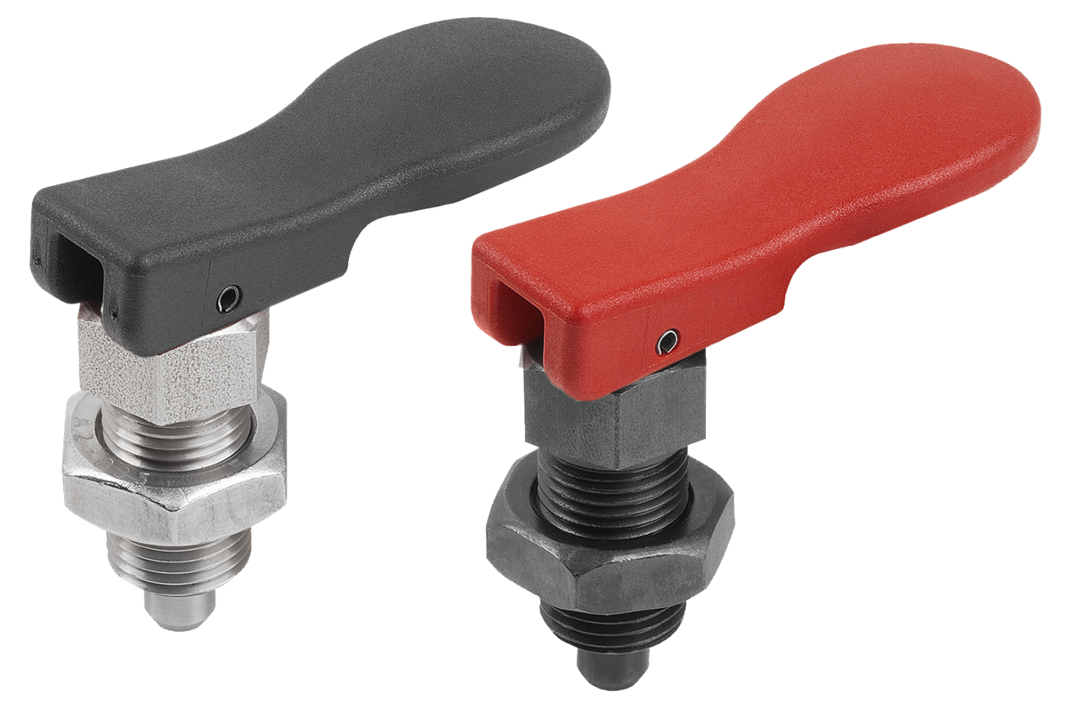 Indexing plungers are used where it is necessary to prevent changes of position due to lateral forces. A new locking position can be set only after the plunger has been manually disengaged. With this indexing plunger a cam lever is used to retract the pin. The indexing plunger remains unlocked as long as the handle is positioned over the dead center of the cam.