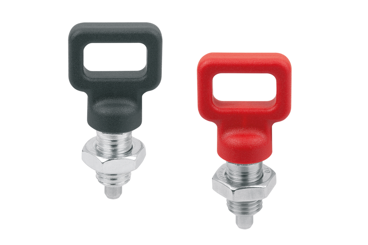 Indexing plungers are used where any change in locking position due to lateral forces should be prevented. A new indexed position can be only be moved to after the pin has been manually retracted.
