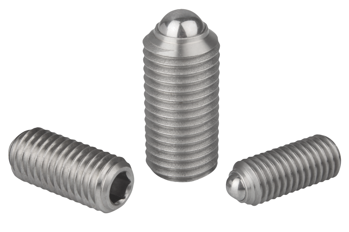 Spring plungers with hexagon socket and ball, stainless steel, long version, standard spring force
