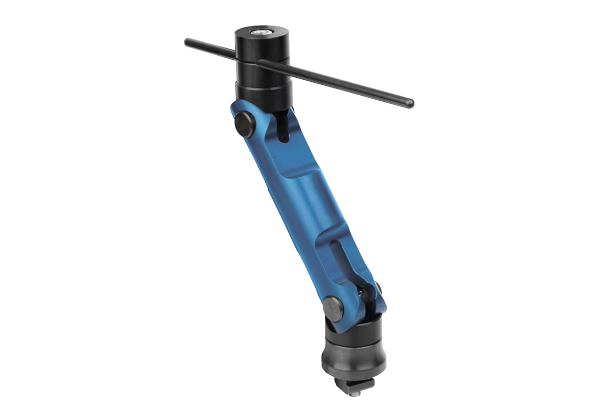 The 5D-swivelling stop serves, among other things, as a versatile instrument for positioning on machining tools or for assembly work. It is infinitely adjustable, quickly and flexibly in 5 axes.
