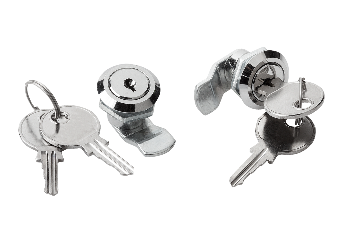 These lockable quarter-turn locks are supplied with 2 keys. The key can be removed in both positions (open and closed). The cylinder locks have a single-key system i.e. the same key works in all locks (lock type 2233).