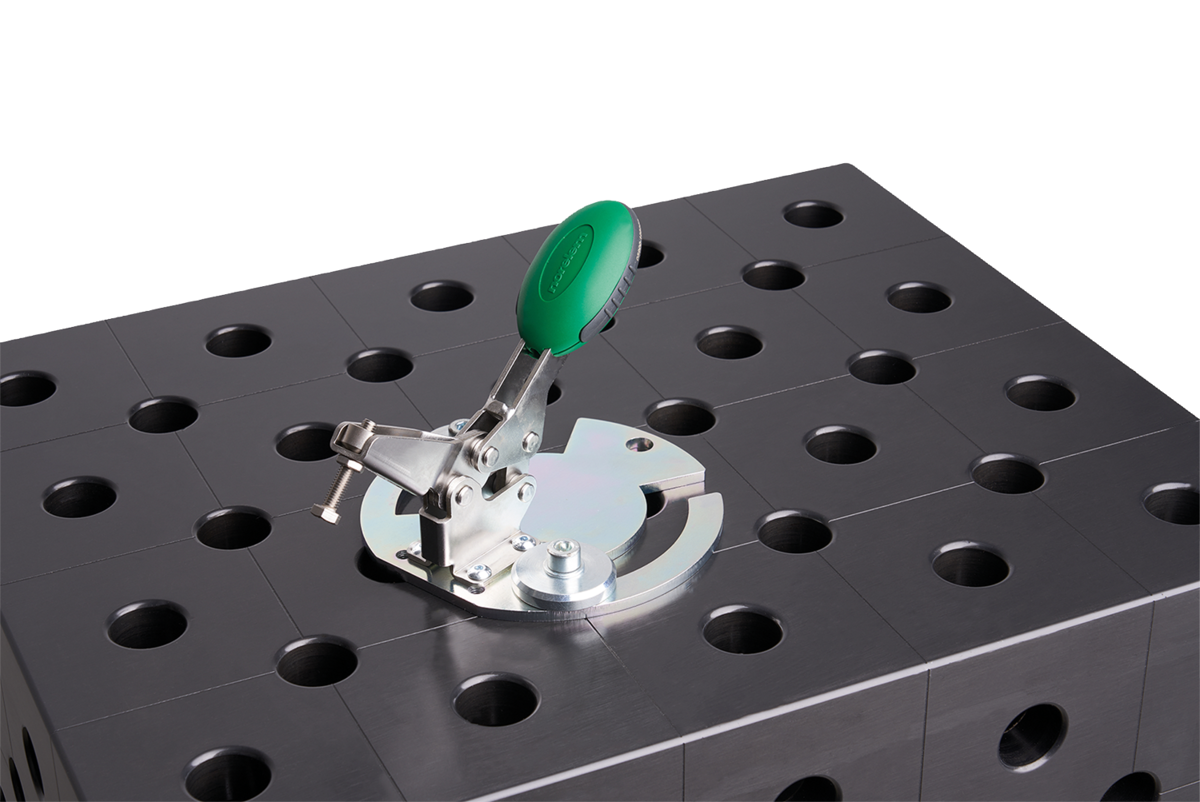 The adapter plates are clamped to the machine table using eccentric clamp modules.