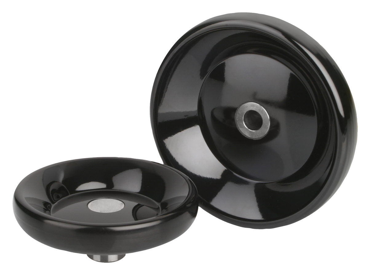 Disc handwheels without grip, steel bushing, Style D, pre-drilled