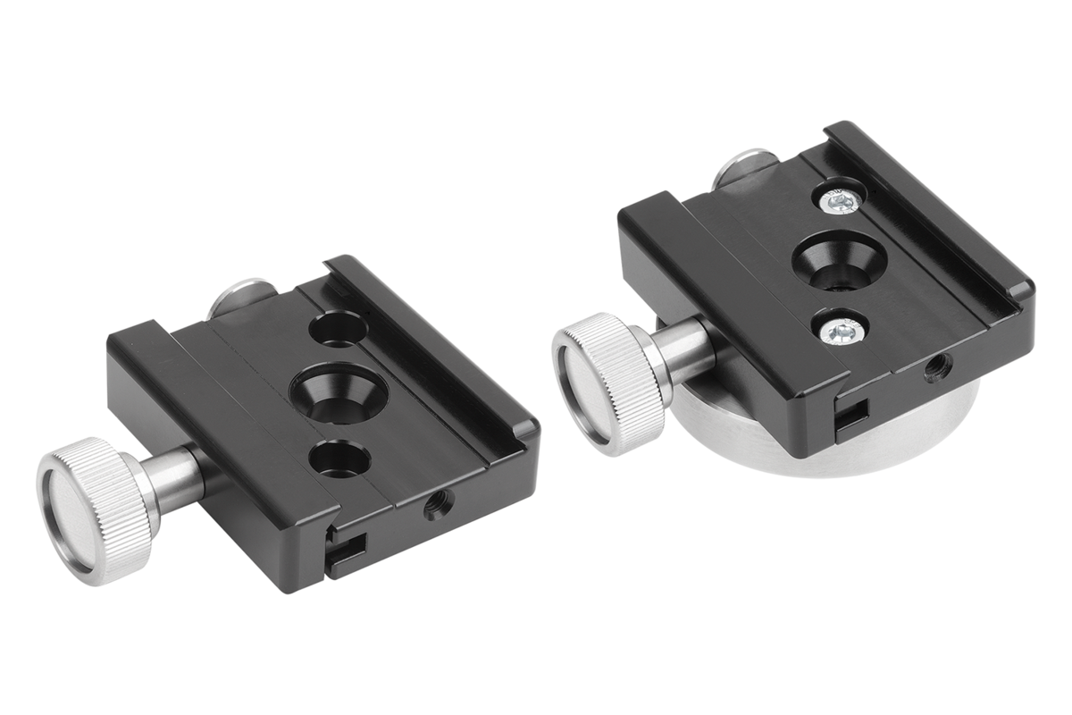 The quick-action clamps serve as the basis of a quick-change system. The quick-action clamps can be mounted directly onto a machine table or baseplate via a tapped hole. The quick-action clamp can be joined to the adapters or angle elements without the use of tools.