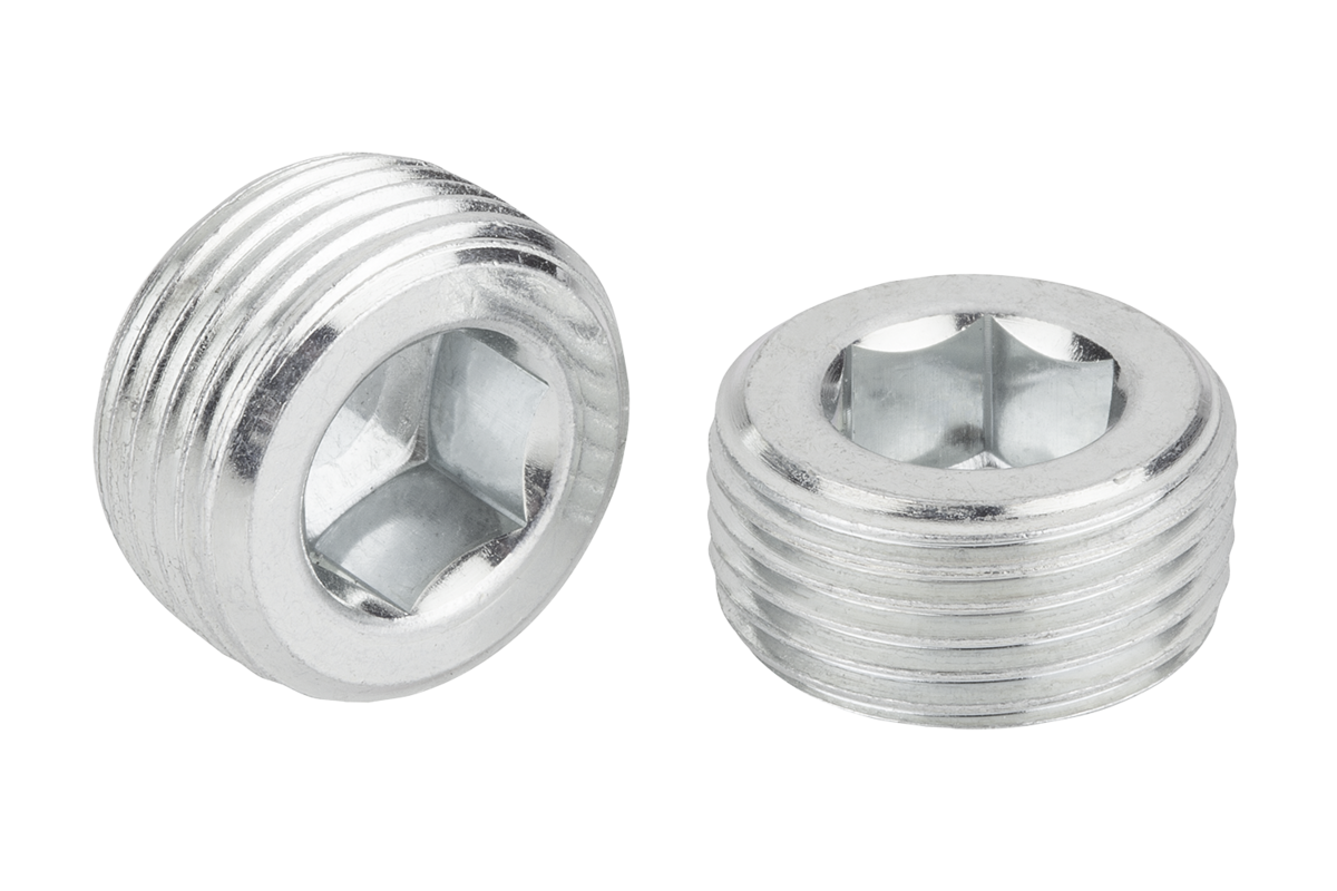 Screw plugs with hexagon socket and tapered threads are suitable for plugging holes with parallel threads.
