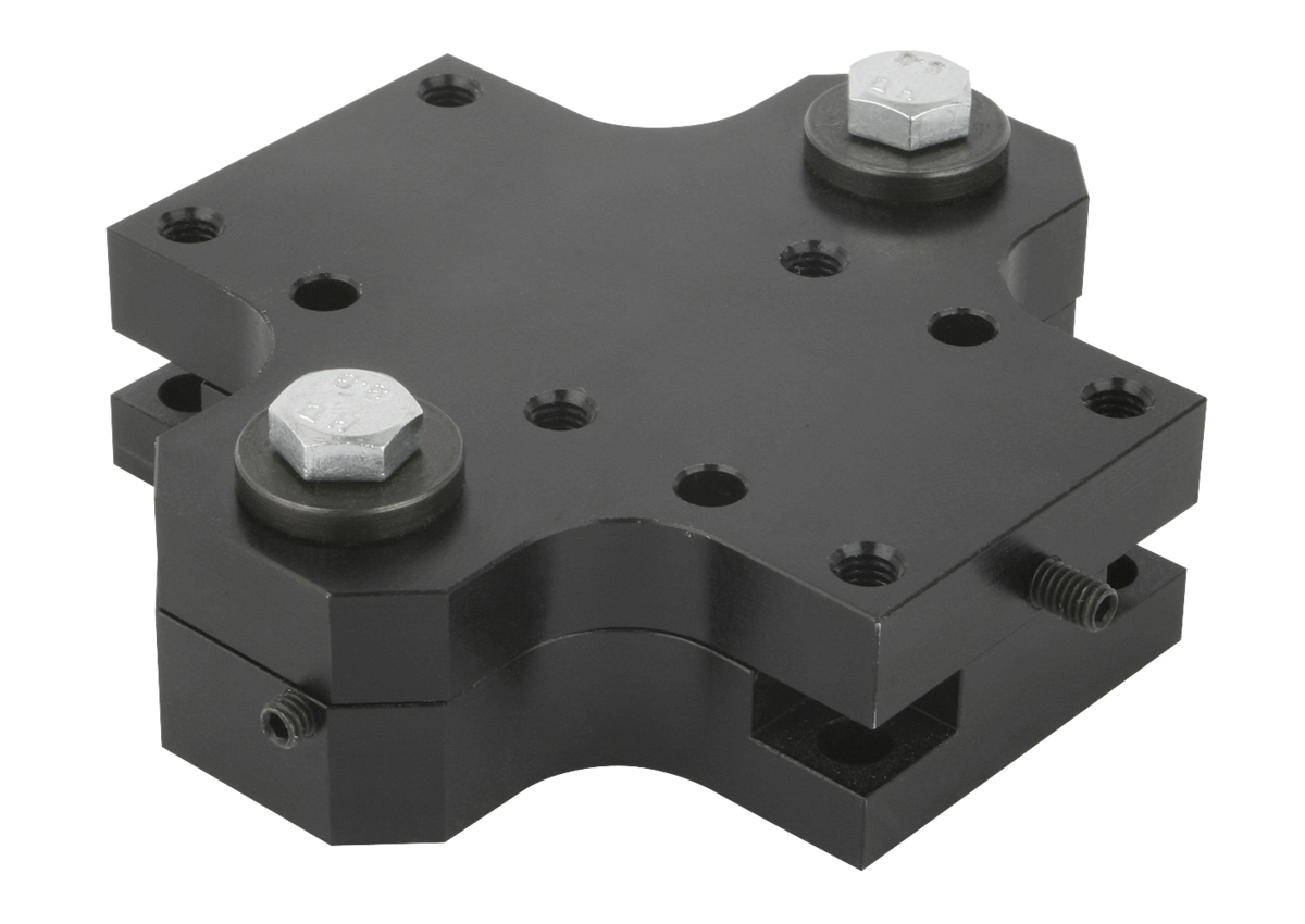 Units for precise adjustment of components in the X-Y axis. Allows compensation for machining tolerances in mechanical assemblies. Matches our single and double bases. The uniform hole pattern of the respective sizes allows the adjustment units to be fitted under the base at a later date.