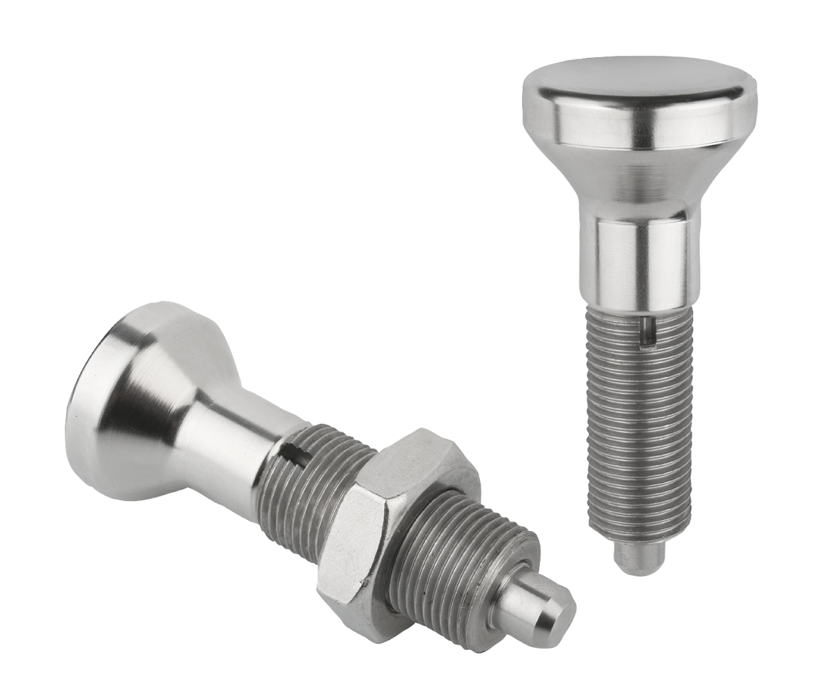 Pernos de bloqueo de acero o acero inoxidable sin collar con botón de maniobra de acero inoxidable y contratuerca