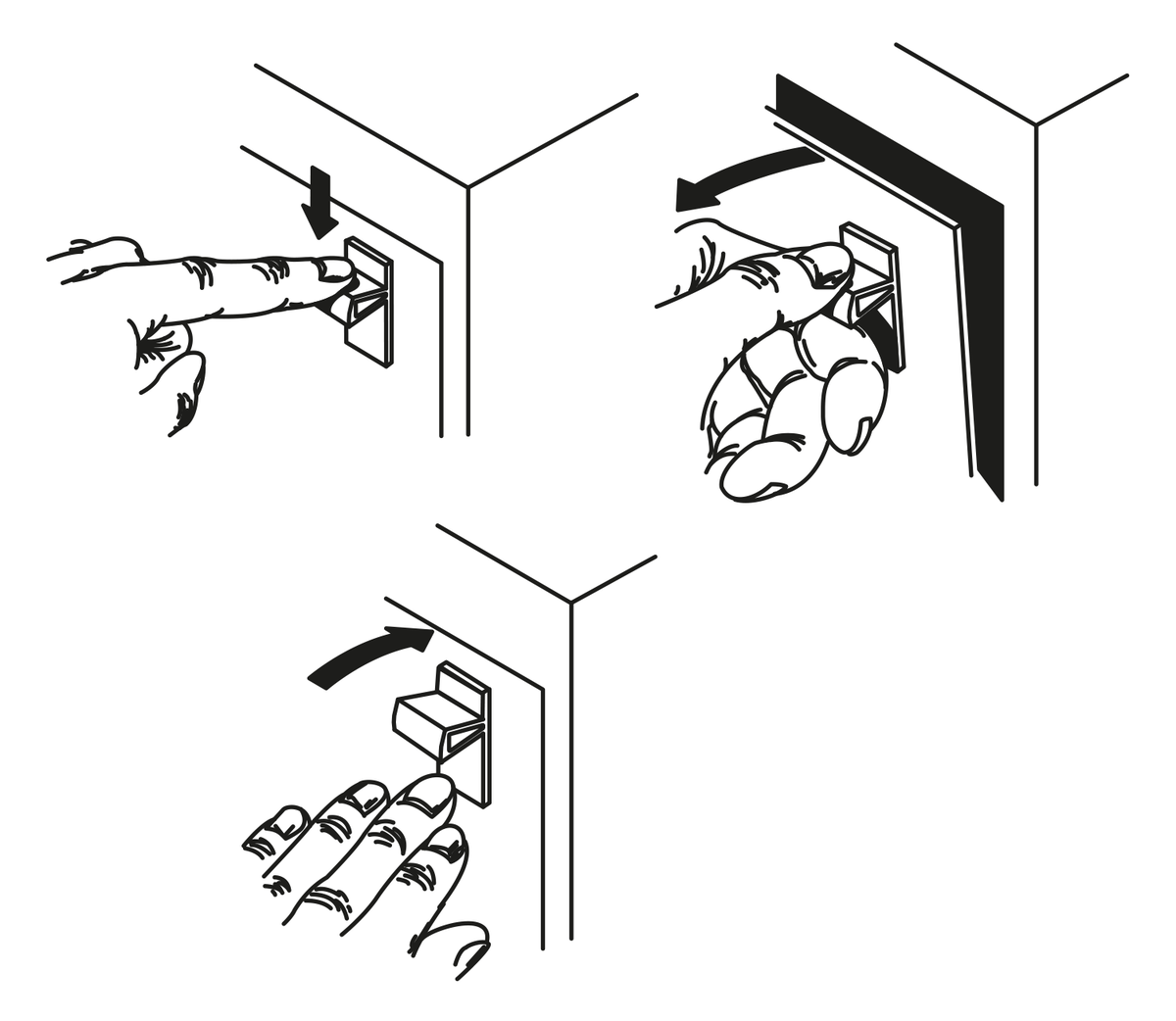 Disponibles en tres tamaños diferentes para distintos grosores de hoja de puerta.
