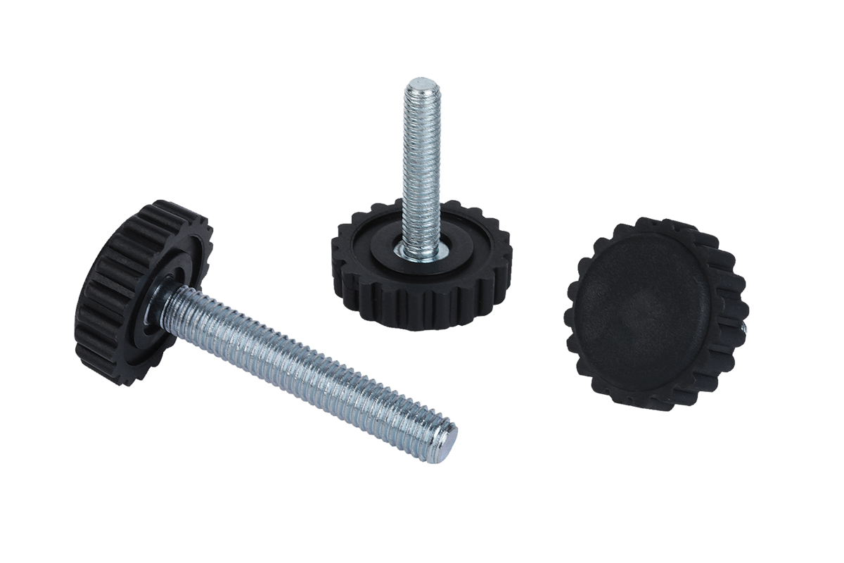 Pie regulable con superficie regulable moleteada. Versión rígida.