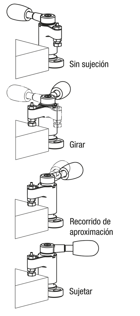 Los dispositivos de sujeción pivotante se utilizan principalmente cuando los puntos de sujeción para colocar y retirar piezas de trabajo deban estar libres.