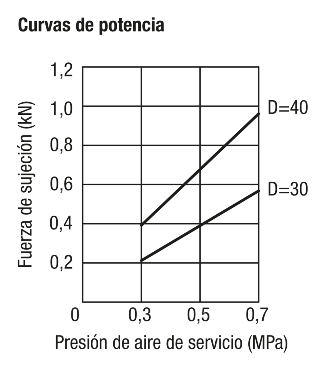 La fuerza de sujeción y la fuerza de agarre hacen referencia a 0,5 MPa.