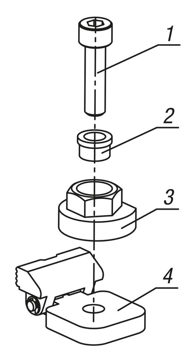 1. Introducir el tornillo de sujeción en el casquillo con collar, la excéntrica de sujeción y la unidad de sujeción y apretarlos en la placa de base.