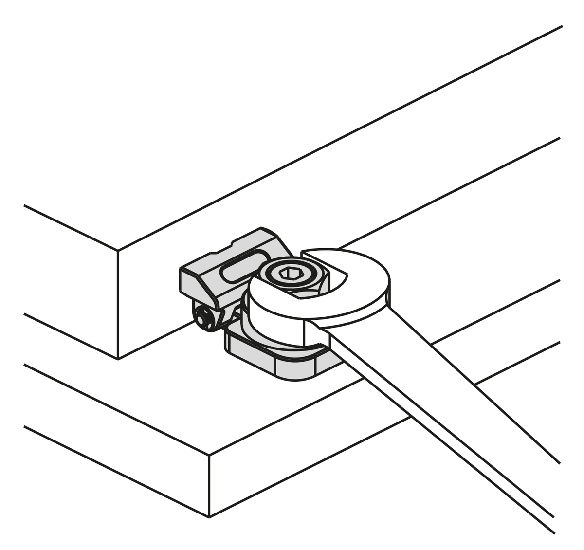 2. Apretando la excéntrica de sujeción con una llave Allen se sujeta la pieza de trabajo.