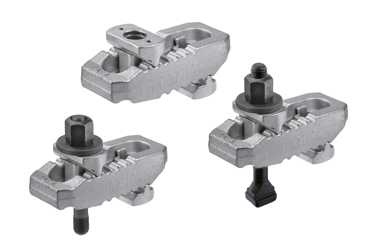 Hierros de sujeción de ajuste continuo y rápido para adaptarse a cada situación. Los hierros de sujeción presentan diferentes tipos de nariz de sujeción en sus extremos, de modo que se pueden girar como convenga para cada caso de aplicación. De este modo, los hierros se pueden utilizar tanto para el mecanizado con o sin arranque de viruta, como para el moldeado por inyección o el prensado.